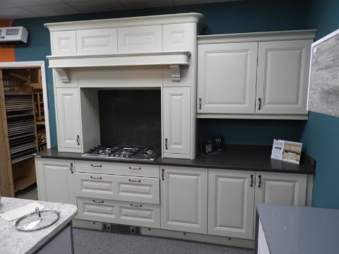 *Jefferson Ivory Display Kitchen with Pewter Latch Handles, and Konigstone Worktop