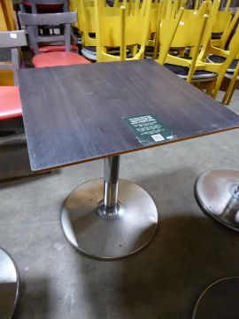 * 2 x square tables with pedestal bases dark tops