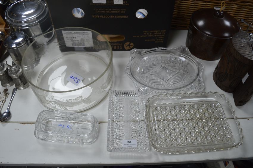 Etched Glass Fruit Bowl plus Serving Dishes etc.