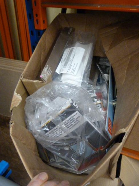 *Box Containing Assorted Curtain Pole Brackets, Finials, Secondary Window Glazing Film etc