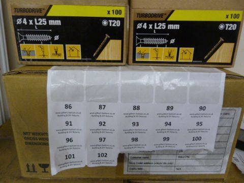 *Carton Containing 64 Boxes of L25 x 4 Turbo Drive CSK Pozi Drive Screws - 100 Screws Per Box
