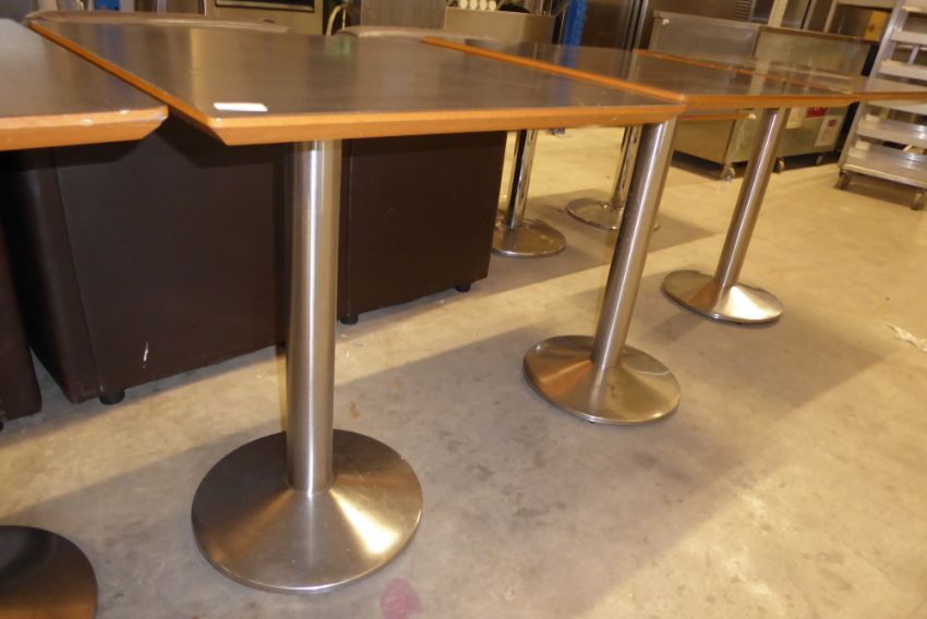 * 4 x square topped tables - brushed S/S pedestal bases with dark ash tops