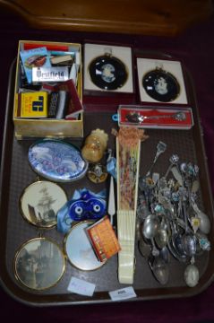 Tray Lot of Collectibles; Matchbooks, Teaspoons, Cameos, etc.