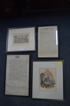 Framed Victorian Prints plus Indenture and Saving Banks Proposal