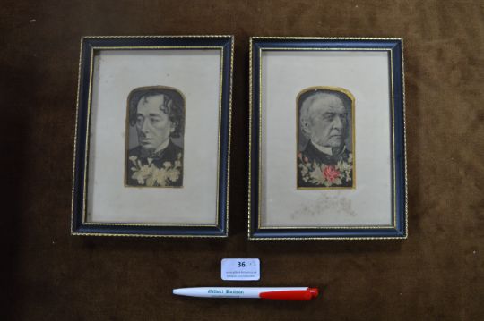 Two Victorian Stevengraph Framed Silk Portraits - Gladstone, and The Earl of Beaconsfield