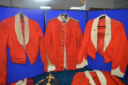 WWI Era Yorkshire Regiment Dress Jacket, Mess Jackets, Spiked Helmet, WWI Trio and Accessories (Captain/Major G.E. Lawrence)