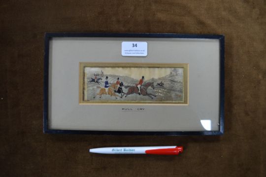 Victorian Stevengraph Framed Silk Picture - Full Cry Hunting Scene