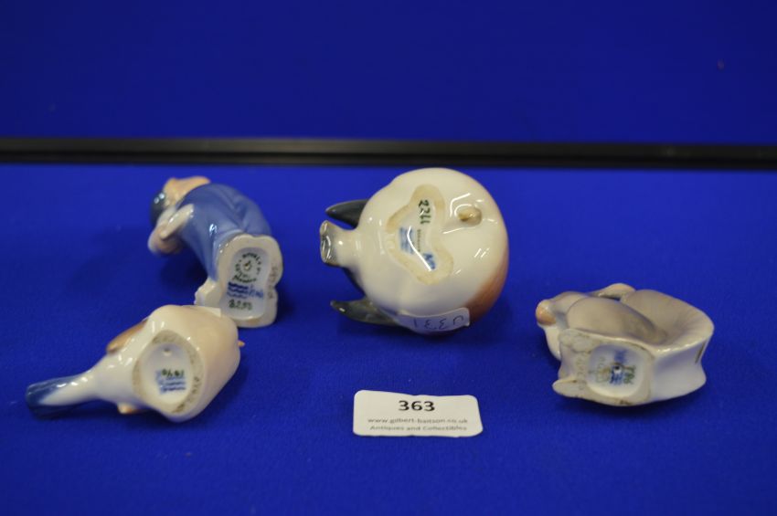 Four Royal Copenhagen Denmark Figures; Birds, Squirrel and a Boy