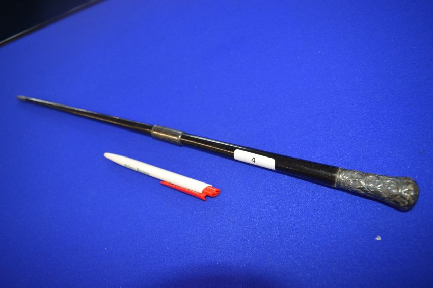 Ebony Conductor's Baton with Hallmarked Sterling Silver Mounts 1891