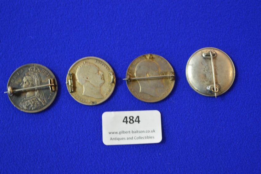 Four Enameled Silver Coins with Brooch Mountings ~55g gross