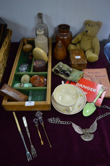 Collectible Items; Opera Glasses, Suzy Cooper Dish, Teddy Bear, etc.