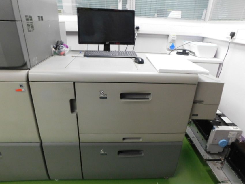 * Heidelburg Versafire Digital Printer CP110 (2017) Speeds.as at 31/01/2022 clicks B/W 529.865 colour 4107.413 - Pro C9100 Entrance unit colour . 3000 sheet staple finisher SR . LCIT RT5100 vacuum. Vacuum Banner sheet tray - EFI e-43 Controller - ES-2000 Hardware only - EFI Impose 2014 HDM Versafire brand plaque C91 3,900 A3 sheets/hour or 130 A4 pages/minute engine (simplex) CP 110 3300 A3 sheets/hour or 110 A4 pages/ minute engine (simplex) (This lot will require professional dismantling/removal) Rated volumes 25,000–500,000 A3 sheets/month (simplex) Sheet size range 100x140mm to 330x700mm Paper weights 52 to 400gsm Colours CMYK Resolution 1,200x4,800dpi Digital front-end options Heidelberg Prinect or EFI Fiery E-43A/83A Full contract serviced by Heidelburg