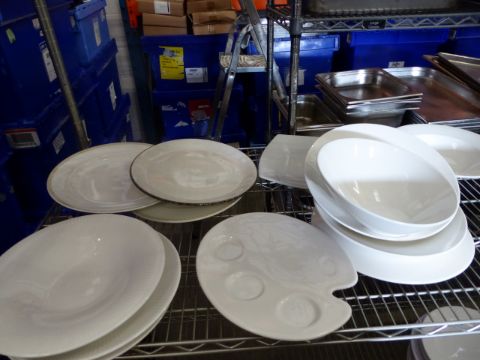150 lots to include fridges, freezers, display chillers, stainless benchs, crockery, cooking equipment, utensils, glassware, packing, etc