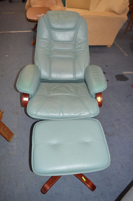 Green Leather Swivel Recliner and Footstool by Mobel Team of Sweden