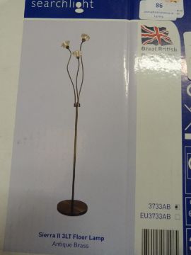 *Floor lamp in antique brass and 3 x clear glass shades. Hight 1600mm. Width 280mm. Takes 3 x G9 bulbs. 3 x 33W