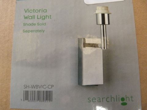 *Polished chrome 1 light wall light. 270mm high. 145mm long. Projection 140. Takes 1 x E27 GLS LED bulb, 20W.