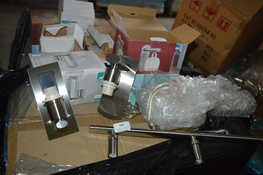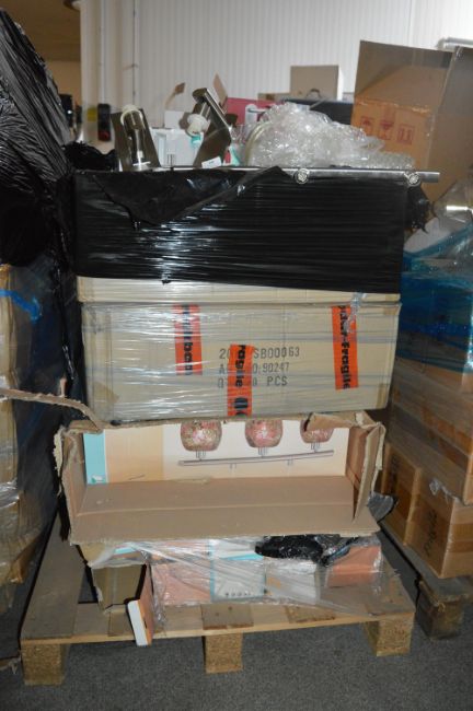 Over 200 Pallets of New and Surplus Electrical Fittings to suit the Domestic and Leisure Industries, lots will include, Mains and Low Voltage Indoor and Outdoor Lighting, Eye Balls, Down Lights, Contemporary Light Fittings, Strip Lights,  Conduits, Sockets and Switches, Etc….
