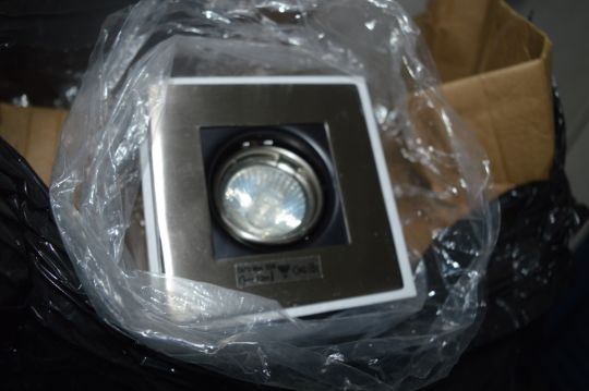 *Pallet of GU10 Lamp Holders, Lamps, and Satin Chrome Rings