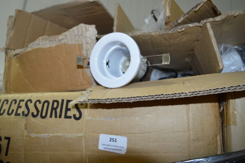 Over 200 Pallets of New and Surplus Electrical Fittings to suit the Domestic and Leisure Industries, lots will include, Mains and Low Voltage Indoor and Outdoor Lighting, Eye Balls, Down Lights, Contemporary Light Fittings, Strip Lights,  Conduits, Sockets and Switches, Etc….