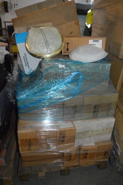 *Pallet of ~60 Bianco 31171 Light Fittings, and a Box of 4 Ceiling Light (brass & white glass)