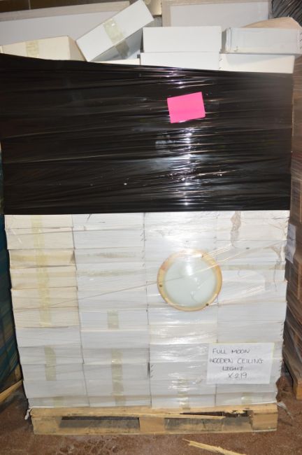 *Pallet of ~210 Full Moon Ceiling Lamps with Wood Grain Bezel