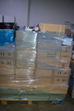 Over 200 Pallets of New and Surplus Electrical Fittings to suit the Domestic and Leisure Industries, lots will include, Mains and Low Voltage Indoor and Outdoor Lighting, Eye Balls, Down Lights, Contemporary Light Fittings, Strip Lights,  Conduits, Sockets and Switches, Etc….