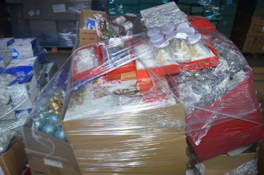 *Pallet of Christmas Items; Baubles, Ribbons, Snowmen, Miniature Christmas Trees, etc.