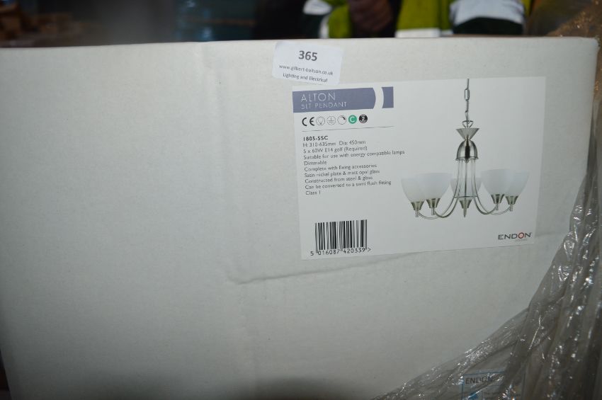 *Pallet of 16 Endon 5LT Pendant Lights (satin nickel & opal glass)