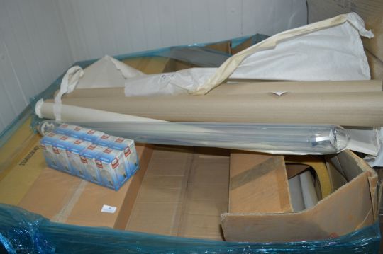 Over 200 Pallets of New and Surplus Electrical Fittings to suit the Domestic and Leisure Industries, lots will include, Mains and Low Voltage Indoor and Outdoor Lighting, Eye Balls, Down Lights, Contemporary Light Fittings, Strip Lights,  Conduits, Sockets and Switches, Etc….