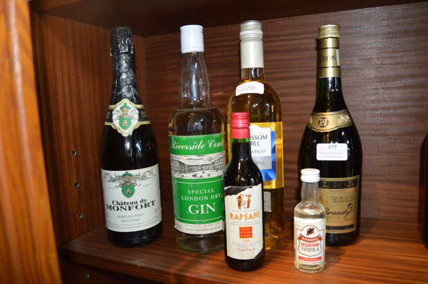 Six Bottles of Alcohol; Wine, Brandy, Gin, etc.