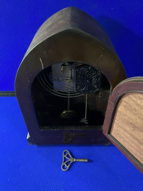 Edwardian Mahogany Mantel Clock (working condition with key)