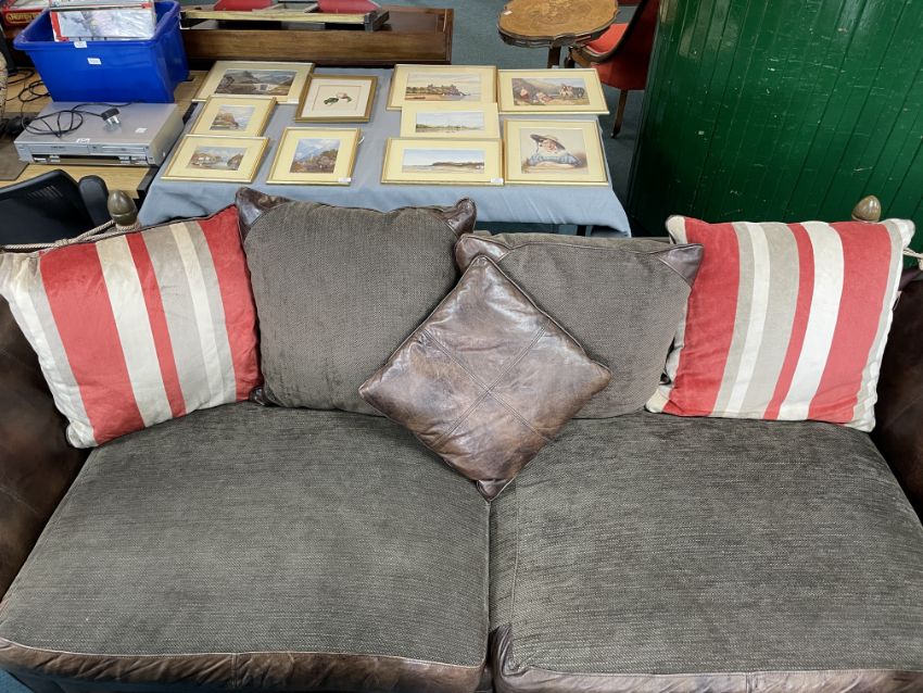 Barker & Stonehouse Drop End Deep Two Seat Brown Leather Sofa in Two Sections