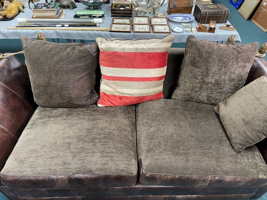 Barker & Stonehouse Drop End Deep Two Seat Brown Leather Sofa