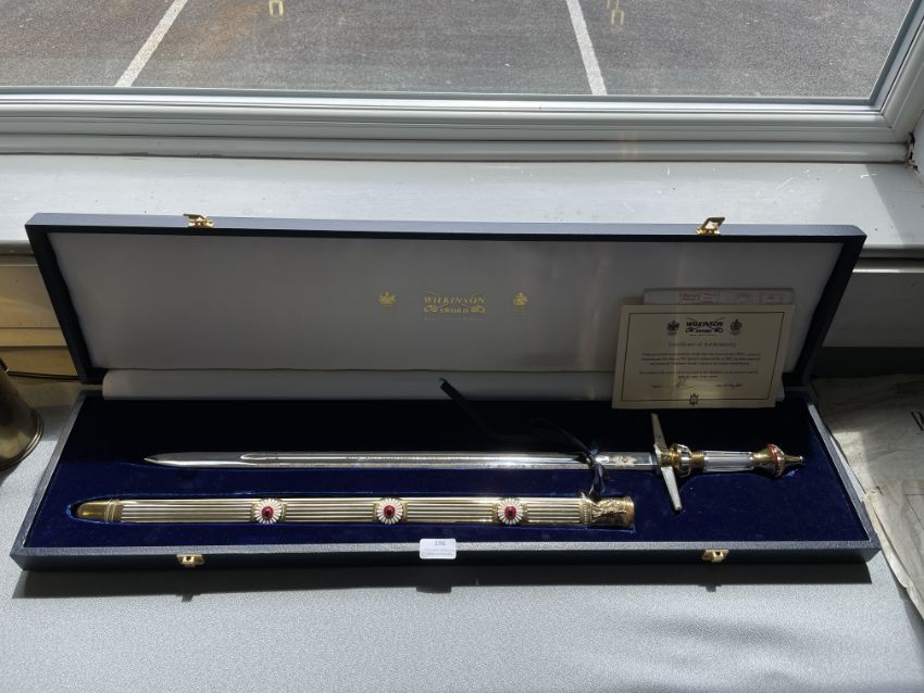 Wilkinson Sword 2002 Queens Jubilee cased Sword and Scabbard with Rock Crystal Handle and Enamel Detail