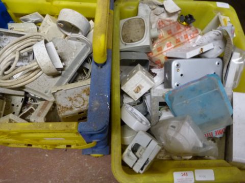Two Boxes of Electrical Items; Back Boxes, Switches, Lights, etc.