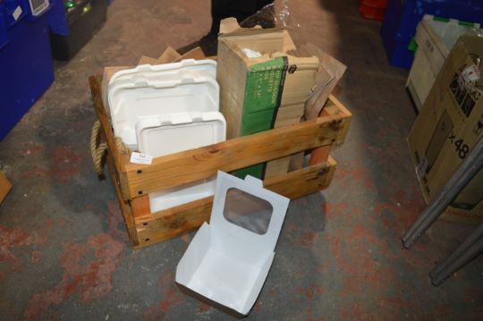 *Wooden Crate of Takeaway Packaging, etc.