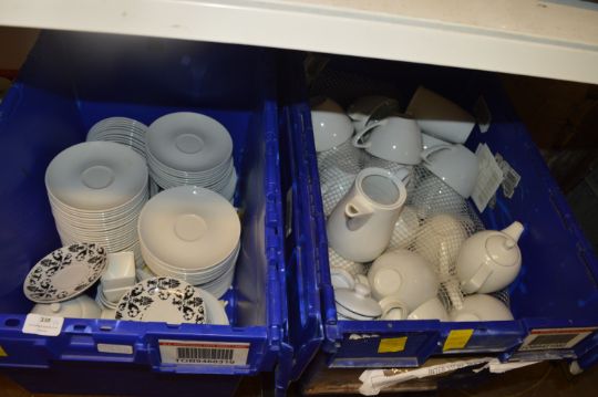 *Large Quantity of White Pottery Coffee Cups and Saucers etc.