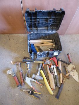 * DeWalt box and contents - large quantity of hand tools - hammers/mallets/saws/trowels/etc
