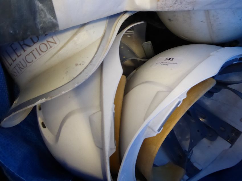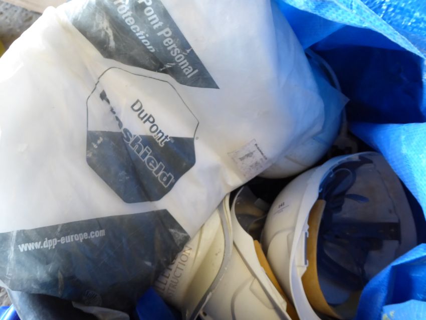 * bag of hardhats, dust overalls