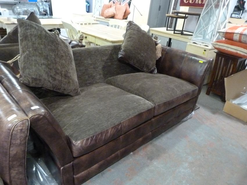 *Large Two Seat Leather & Fabric Drop End Sofa (corner fixtures missing)