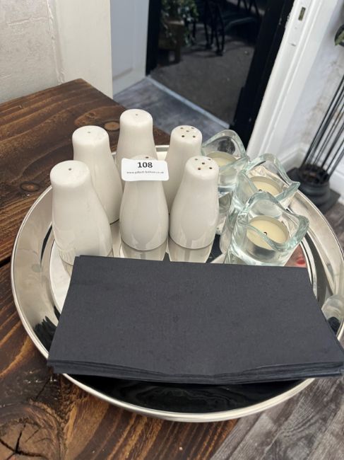 *Two Stainless Steel Trays, Condiments, Tealight Holders, etc.