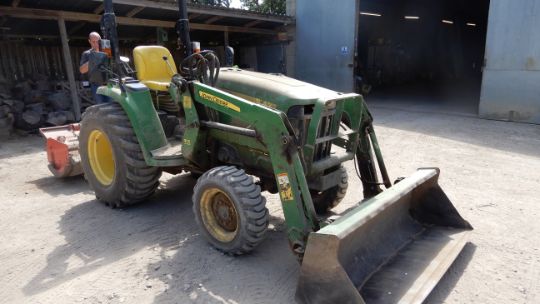 *John Deer 3036E Mini Tractor with John Deer 305 Hydraulic Loader, Hours: 1052 (not including cultivator)