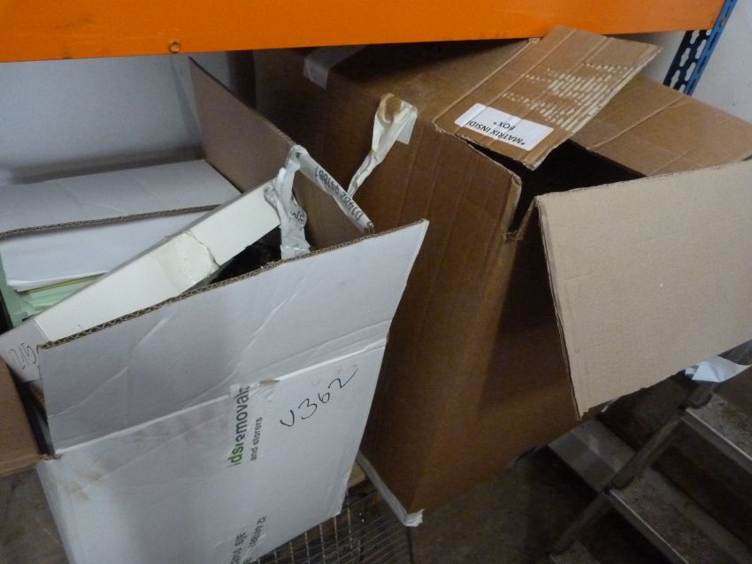 *Box of Various Coloured Paper, and a Box of Various Drinking Glasses Including Pint Glasses, Staropramen Mugs, etc.