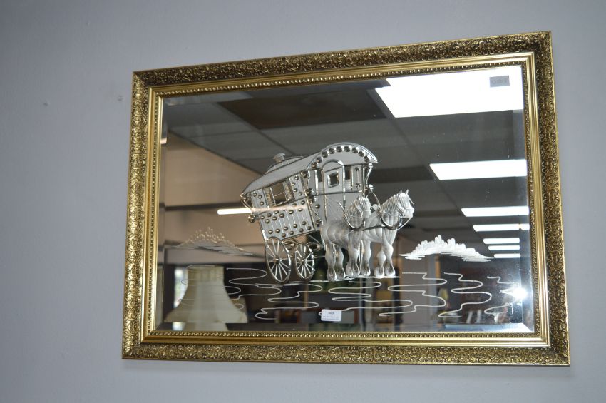 Gilt Frame Etched Mirror with Gypsy Caravan Design
