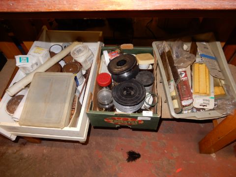 *Three Boxes of Assorted Garage Bric-a-Brac; Nails, Piano Wire, various Paints, Screws, Nails, etc.