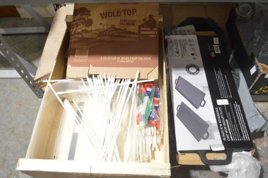 *Two Boxed Cast Iron Reversible Skillet Plates 50x23cm and a Quantity of Mini Plastic Flagpoles