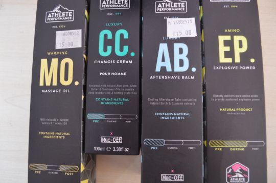 *Muc-Off Toiletry Kit; Shaving Cream, Explosive Power, Aftershave Balm, Chamois Cream, and Massage Oil
