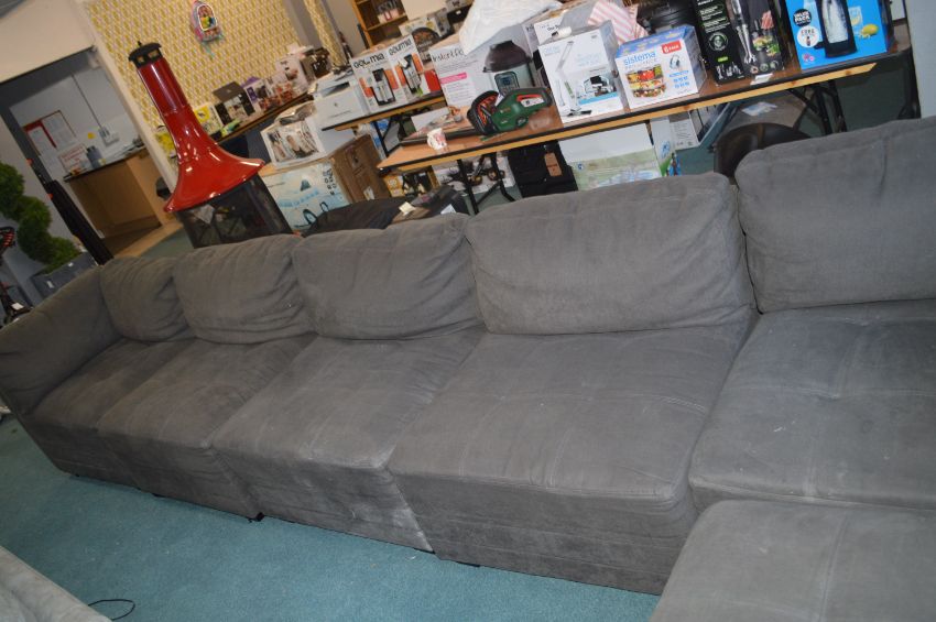 *Six Section Grey Fabric Corner Unit Including Gas-Lift Storage Stool
