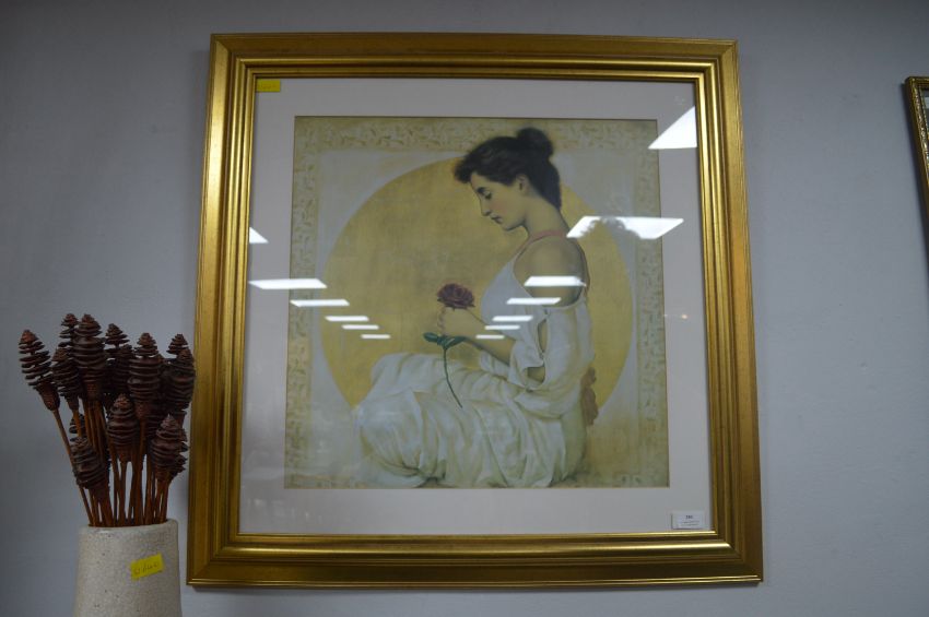 Gilt Framed Portrait of Lady with a Rose