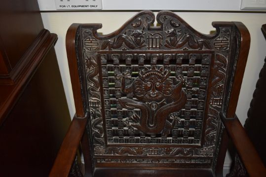 Five Oriental Carved Mahogany Chairs